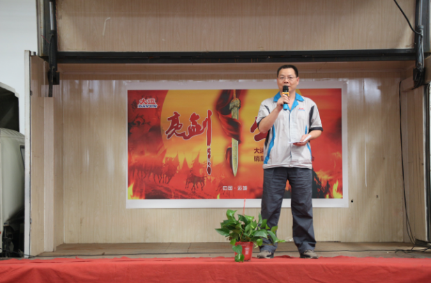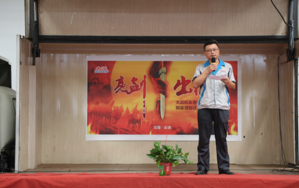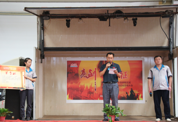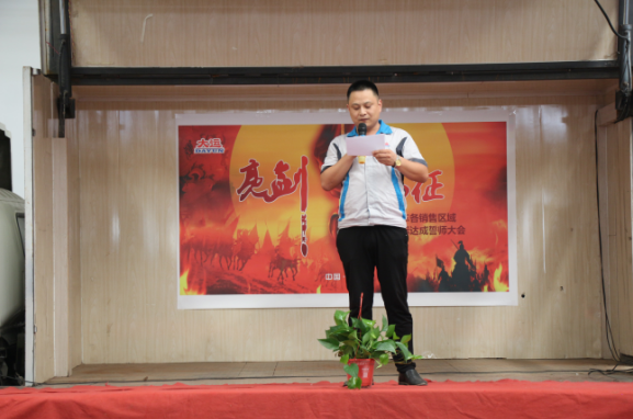 下午14:30,誓師大會在主持人的宣布中正式拉開帷幕。大運機車銷售副總助理盧傳祥首先上臺,對本次營銷精英誓師大會的開幕作了致辭,他希望我們大運機車的銷售精英們,能夠在9月份披荊斬棘,乘風破浪,達成目標。