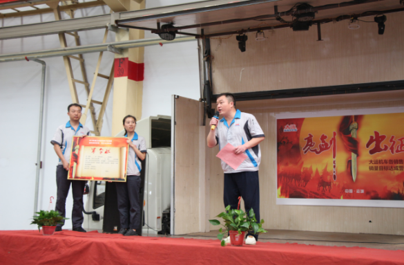 8月30日,一場以“亮劍出征”為主題的2018大運機車各銷售區域9月份銷量目標達成誓師大會在大運機車總裝車間隆重舉行,公司各部門員工齊聚一堂,市場處十三個大區經理為圓滿完成9月份銷售任務目標進行了莊嚴誓師。