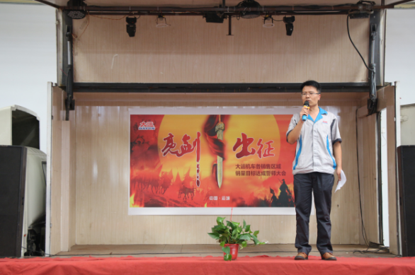 首先,他對周總因公出差不能親臨現場的情況進行了說明,并代周總對我們此次誓師大會的所有營銷精英們問好,他表示,周總雖出差在外,但是仍關心著我們本次大會的召開,所以特將此次誓師大會所有事項授權委托給我和銷售副總助理盧傳祥,希望我們能夠將活動組織好、策劃好,同時希望大家能夠振奮精神,昂揚斗志,帶著大運公司領導和員工們的信任迎難而上,奮勇拼搏,努力完成9月份銷售任務目標。