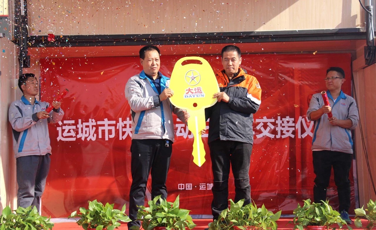 活動開始前,運城市郵政管理局局長、黨組書記董向陽先生作了開幕致辭,他表示郵政快遞行業(yè)是國家重要的社會公用事業(yè),是不可缺少的基礎性行業(yè),在服務大眾便捷百姓、提高人民日益增長的物質(zhì)、文化生活動方面,有著深刻的內(nèi)涵和意義。同時,董局長就快遞行業(yè)當下的發(fā)展狀況、未來的發(fā)展趨勢做了簡要闡述,對本次快遞車的成功下線交付表示祝賀,對行業(yè)內(nèi)相互融合,相互促進,共同發(fā)展的良好局面提出了高度贊賞。